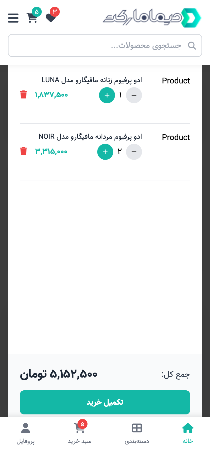 - نمایش تعداد محصولات در آیکون سبد
