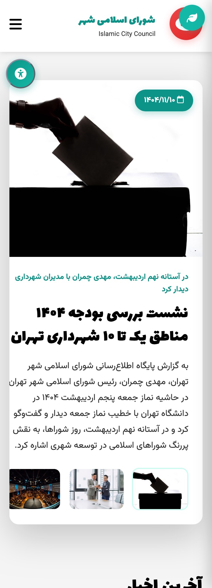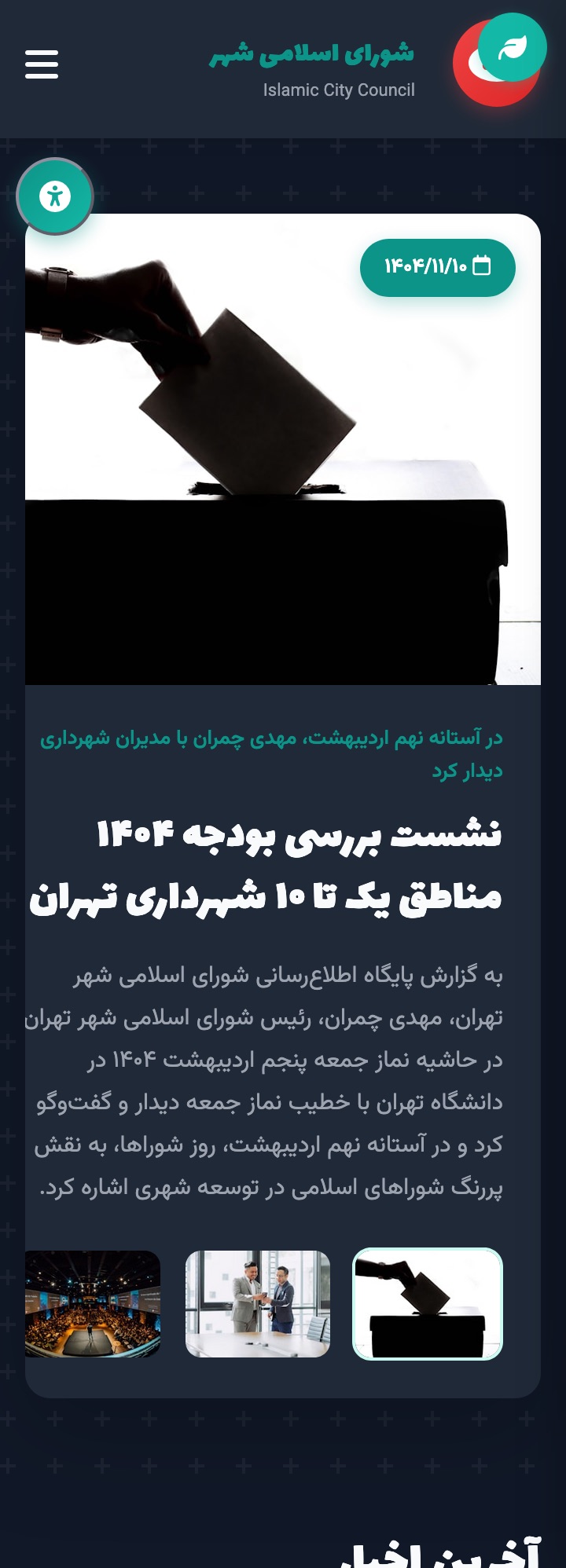 قالب شورای اسلامی شهر یک قالب حرفهای، مدرن و کاملاً فارسی برای سازمانهای دولتی، شوراهای شهر، شهرداریها و نهادهای عمومی طراحی شده است. این قالب با تمرکز بر دسترسیپذیری استاندارد جهانی (WCAG 2.1) و تجربه کاربری بینظیر ساخته شده تا نیازهای تمامی شهروندان از جمله افراد دارای معلولیت بینایی را برطرف کند.